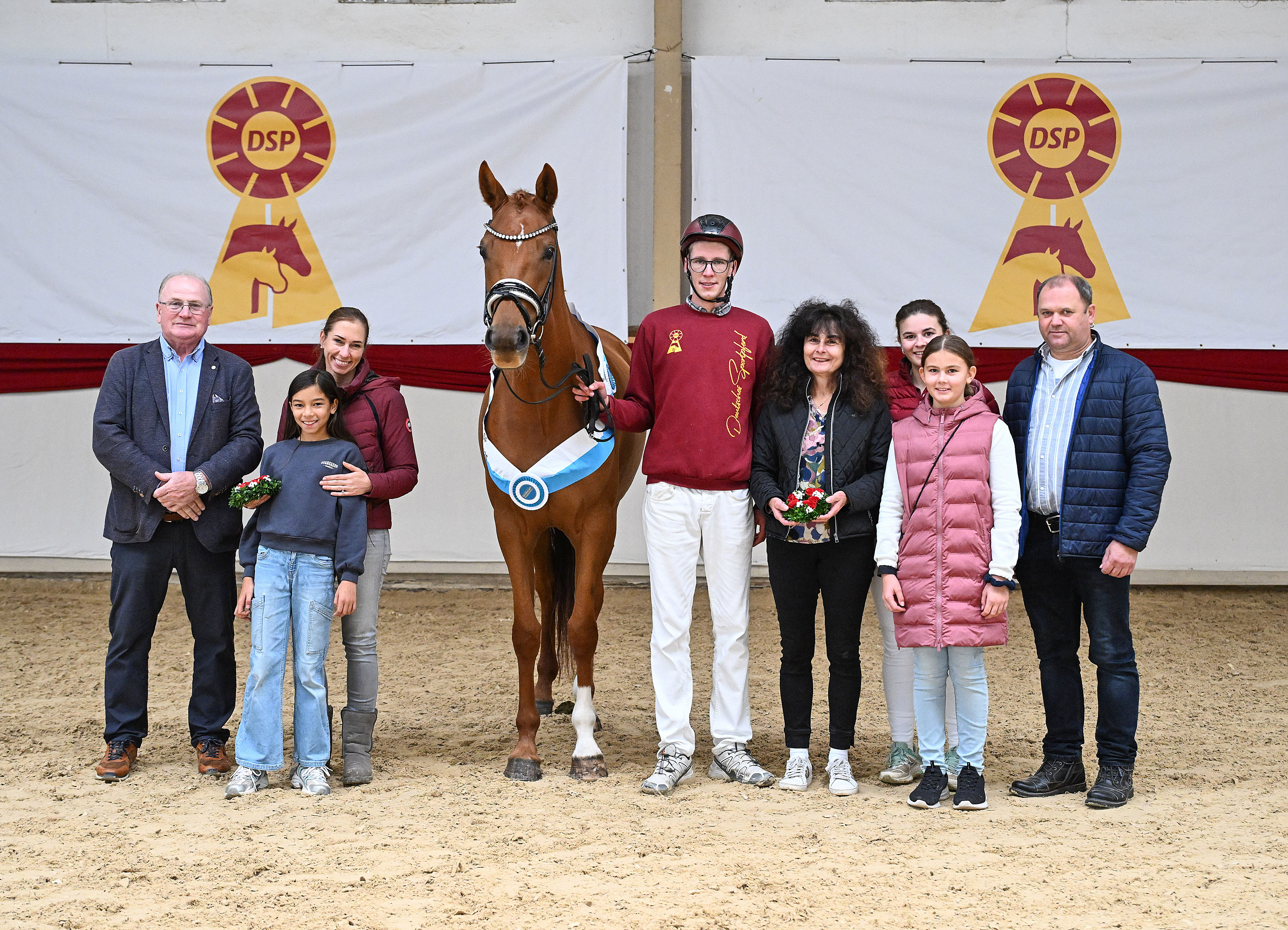 Ein erfolgreiches Turnierdebüt für den süddeutsch gekörten DENIR von Dynamic Dream aus der ES/SP Bonjour Jolie K von Ampere x Fürst Piccolo.